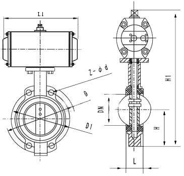 气动调节蝶阀主要外形尺寸