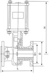 GJ641X气动管夹阀由气动装置,左右阀体,橡胶管套、大小阀杆、上下闸板、导柱等零件组成。当顺转手轮时,使大小阀杆同时带动上下闸板,压缩管套,进行关闭,反转即行开启,这样闸板在导柱之间上下往复完成阀门开闭工作。另外,因橡胶管套承力,因此在开关时,操作人员旋转手轮时只要感到适量抵触,均己达到开闭点,切勿尽力或多人辅助,禁用其他工具开闭。