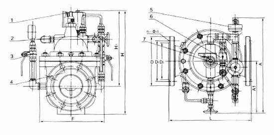700X水泵控制阀由主阀、电磁导阀、针阀、球阀、单向阀、行程开关、微形过滤器和压力表组成水力控制接管系统。水泵需停止工作时,先由进口压使主阀关闭90%后,水泵停止运转。剩余10%由回水关闭。可防止水锤现象发生。